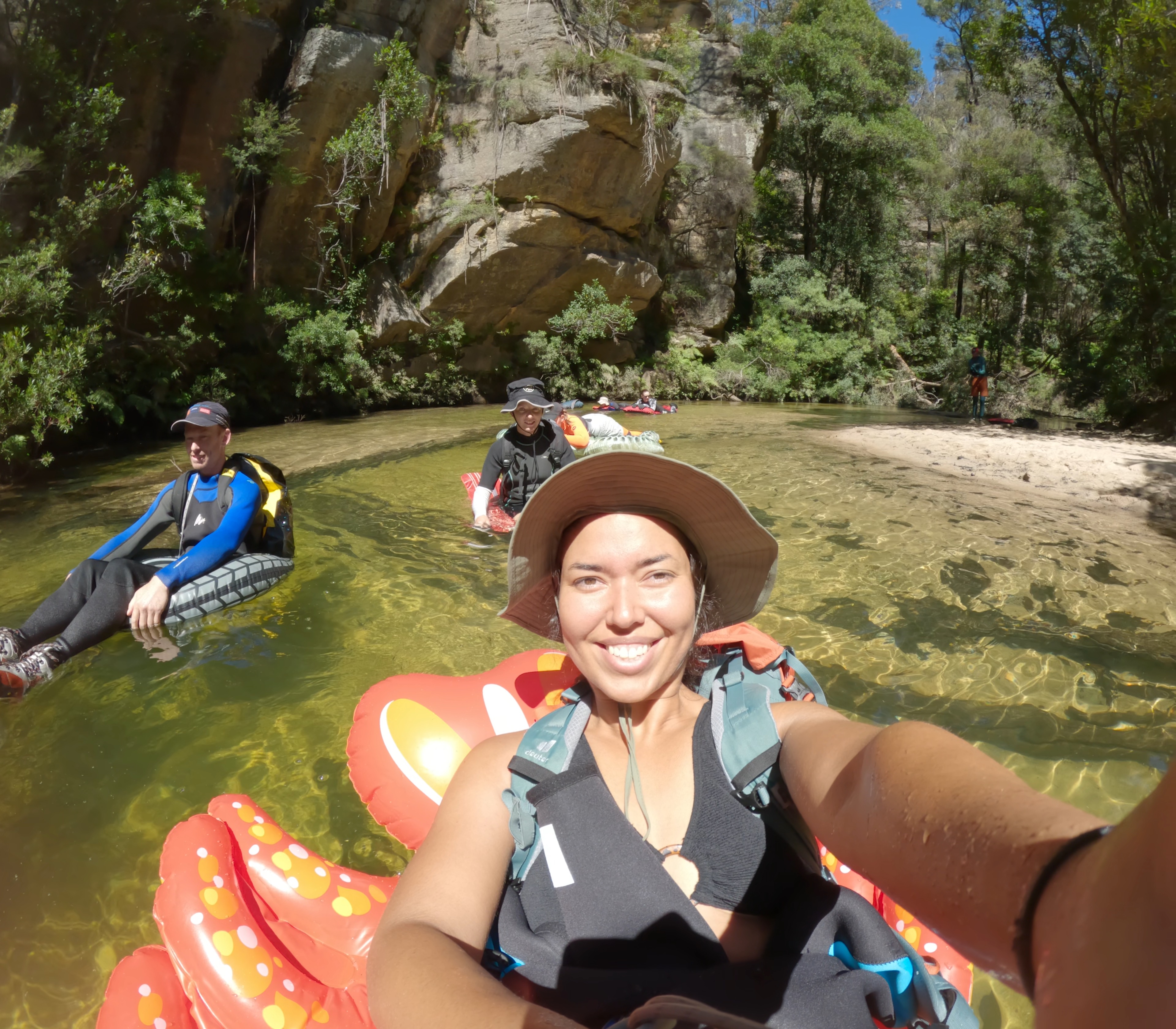 The Wollongambe Float is a long day, but mostly relaxing and 100% worth it. Floating down the Wollongambe river to the peaceful sounds of birds and silence, engulfed by towering sandstone escarpments on either side of you for most of the float with crystal clear water below - this is truly one of the most beautiful, serene and tranquil activites you can do in the Blue Mountains. While all of that sounds great, before you start putting on your wettie, it’s important to know what you’re in for physically. There are multiple rock scrambles (like, big ones) and a long walk out (with a short rope-climb section) that will make you want to jump back in the freezing cold water not long after starting. This day is the perfect combination of a little (or more) effort with a lot of reward.