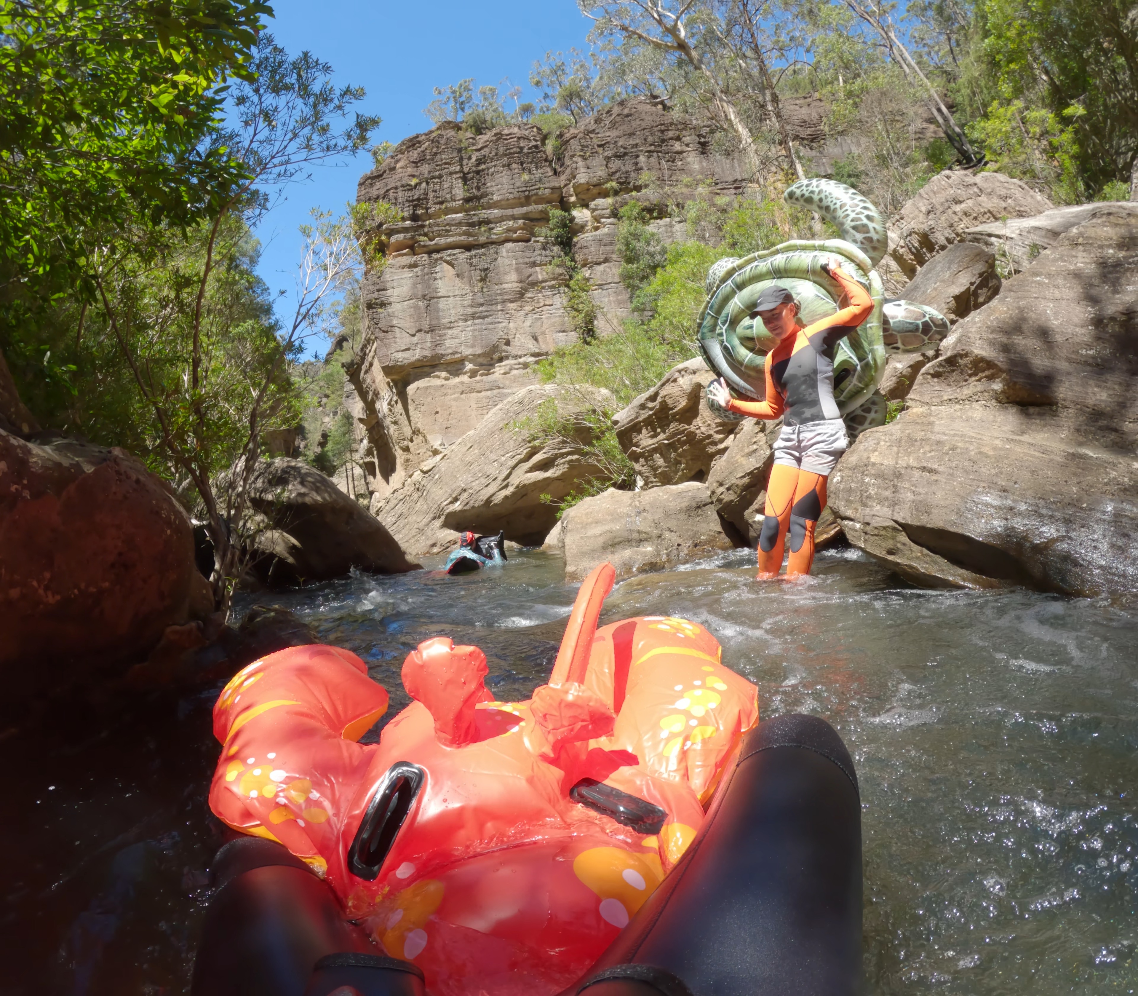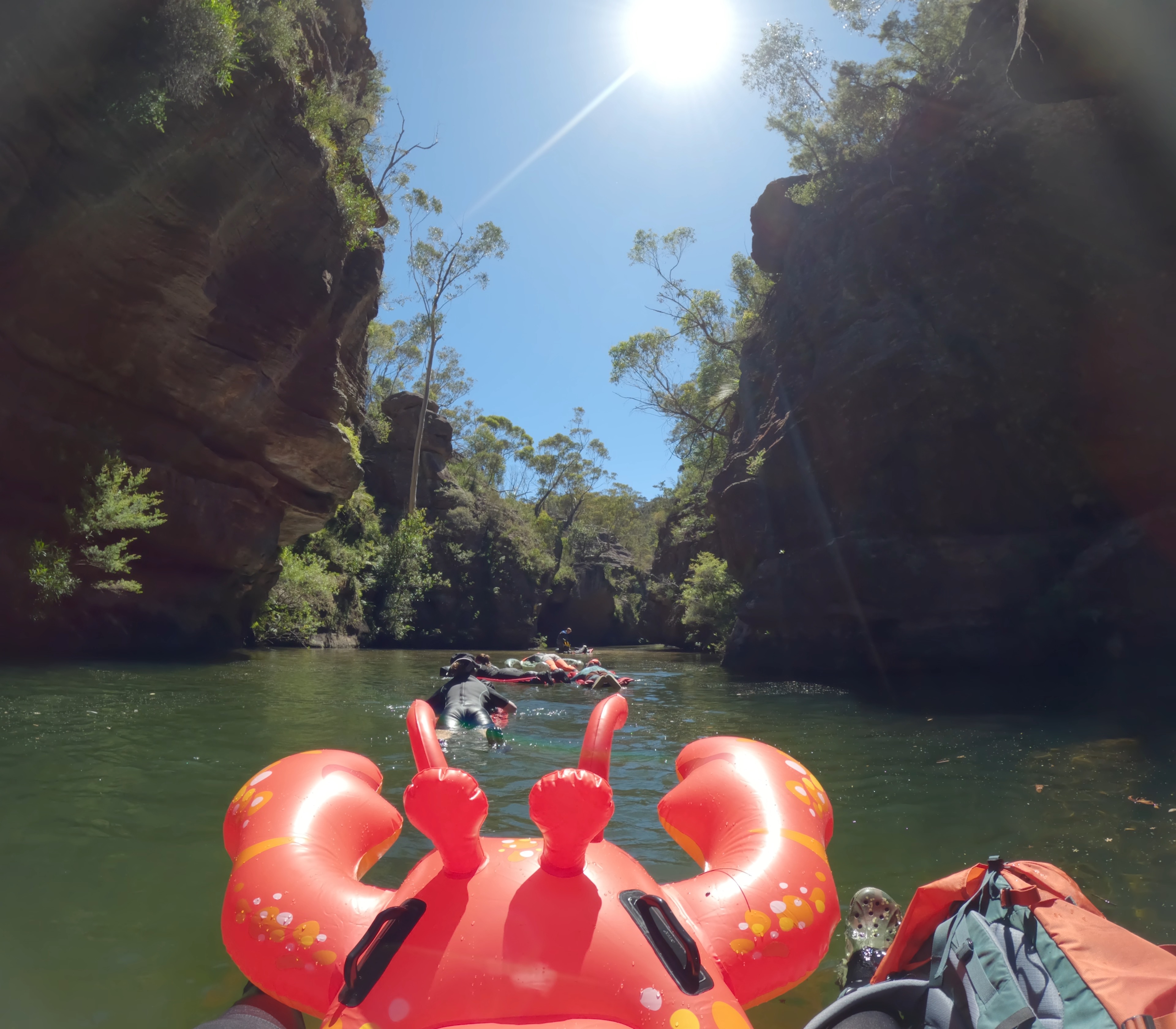 I have actually done this float twice (and plan on going back many more times), so the photos below are a mish mash of my two floats. Choosing your lilo is what makes this trip even more fun - you may notice my not-so-subtle lobster for trip #1. Unfortunately, Larry the Lobster had to be retired after just one float, sustaining irreversible damage from being dragged over rocks (how dramatic). Anyway, it’s probably not the best idea to purchase an expensive float for this trip - you will scrape over many rocks and sticks with high chances of a puncture. I managed to avoid this on trip #2 using a cheap blow up lounge (not sponsored but turned out to be a good option). 10 points if you can spot the photo where Larry the Lobster has seen better days.
